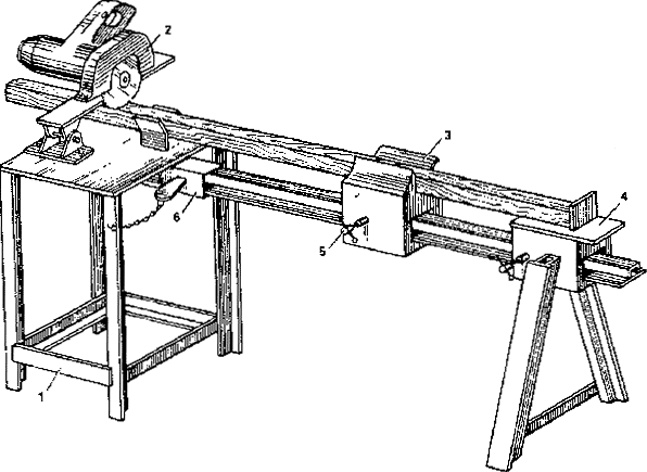 направляющая; 4 – тележка; 5 - пила электрическая дисковая ИЭ-Л02Б; 6