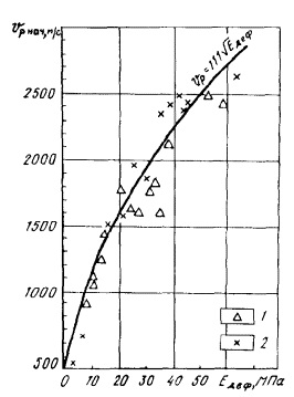 зависимости между скоростью продольных волн и модулем общей деформации для