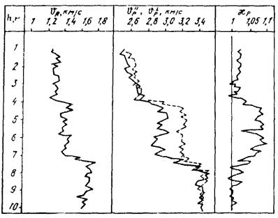 выделяются четыре интервала; средние по интервалам значения скоростей упругих