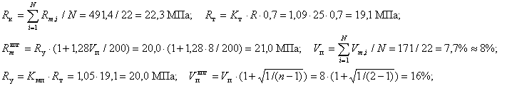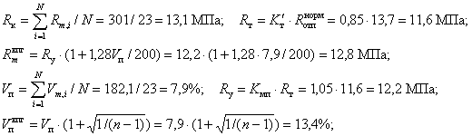 = 1,09×25 = 27,2 МПа; По табл. 4 ГОСТ 18105-86 при Vп = 9,3 % коэффициент Kмп = 1,07. По формуле (12)