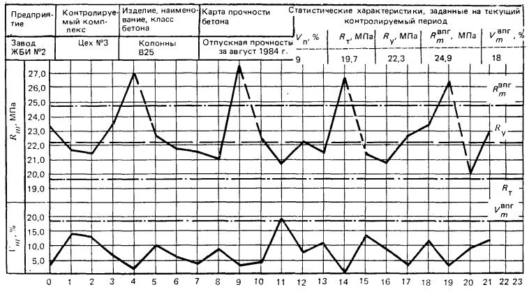 бетона в партии и партионного коэффициента вариации
