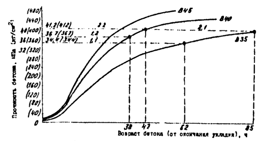 Минтрансстроя СССР. Указанные графики учитывают рост прочности бетона в течение