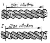 и рисунка. Рисунок. Определение шага свивки шестипрядного каната: 1 - крестовой свивки; 2 - односторонней свивки 2. Шаг свивки каната