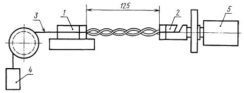 должен быть сложен пополам и скручен на длине 125 мм. Значение натяжения испытуемого провода при