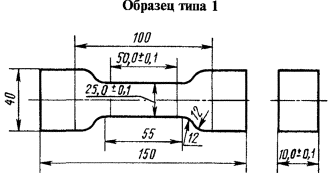 редакция, Изм. № 1). 2. ОБРАЗЦЫ ДЛЯ ИСПЫТАНИЯ2.1. Для испытания применяют образцы типов 1 - 3 (черт. 1 - 3). Черт. 1.