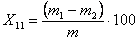 где X - массовая доля протеина, жира, золы или клетчатки, %; т1 - масса протеина, жира, золы или клетчатки в навеске муки, г; т - масса навески муки, г; W - нормируемая массовая доля влаги, %; W1 - фактическая массовая доля влаги, %. (Измененная редакция, Изм. №