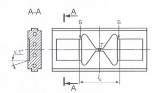 литник с диаметром со стороны сопла не менее 4 мм; Б – впускной литник; lс – расстояние между линиями, вдоль которых образцы