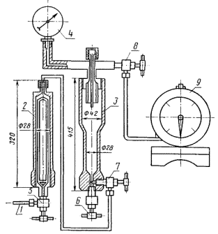 - манометр; 5, 6, 7, 8 - запорные вентили; 9 - газовый