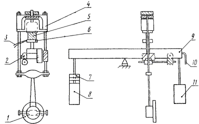 сменные грузы 7, служащие для статического сжатия образца 5. На