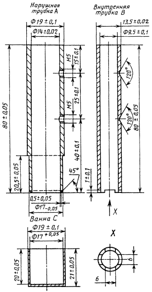 от 15 до 20 мм должен быть введен в отверстие внутренней трубки В. Объем припоя - не более 1400