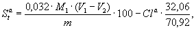 гидроксида натрия (калия), а хлорид-ионов - с помощью азотнокислой ртути (II) или по ГОСТ 9326 массовую долю общей серы в аналитической пробе (Sat) в процентах по массе вычисляют по формуле