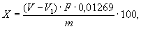 титрование испытуемого нефтепродукта, см3; F - фактор раствора тиосульфата натрия 0,1 моль/дм3; 0,01269 - количество