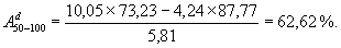 крупности 50 - 100 мм равен g50-100 = 10,05 - 4,24 = 5,81 %.