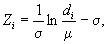 находят значение параметров m, s, где s - среднее квадратическое отклонение логарифмов относительных диаметров