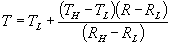 температуры, соответствующее проценту отгона RH, °C; TL - показание температуры, соответствующее проценту