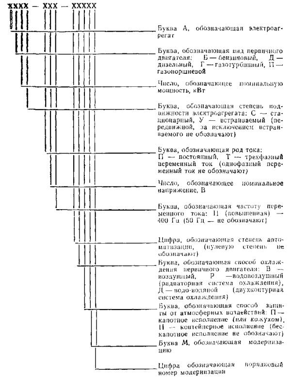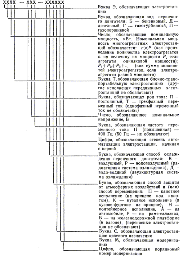 обозначений, соответствуют классификации электроагрегатов и электростанций по ГОСТ