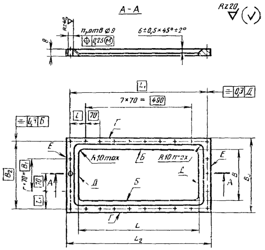Б и поверхностей Е и Ж относительно поверхности Д не должна быть более 0,5 мм, 2.1.8. Несимметричность поверхности Г рамки относительно поверхности Б и