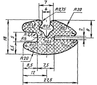 резиновом профиле. 2. КОНСТРУКЦИЯ И РАЗМЕРЫ