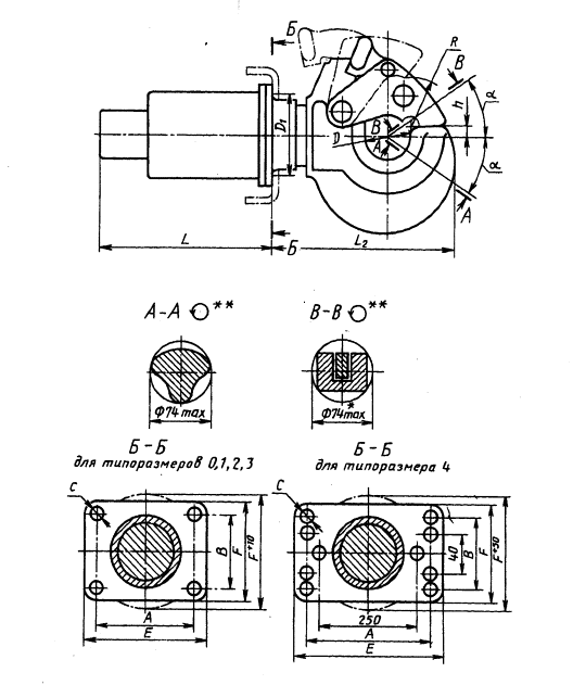 размеры А, В, С, D1 E, P, L,