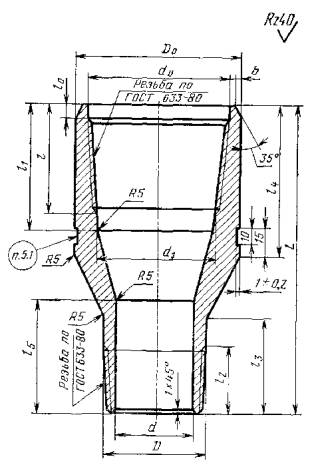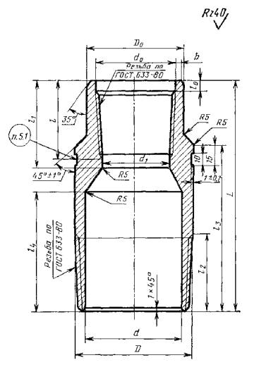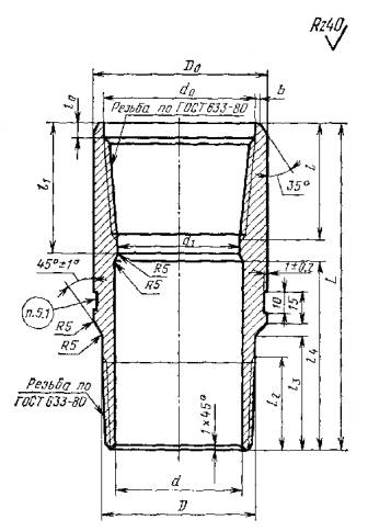 в соответствии с требованиями ГОСТ 633-80. 2.5. Оси резьбы обоих концов переводника