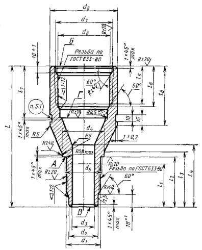 В, и Г переводников типа ПБ должны изготовляться в соответствии с требованиями ГОСТ 633-80. (Введен дополнительно, Изм. № 1) Размеры в мм