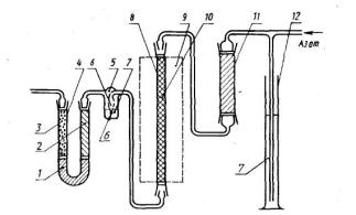 азотом при минимально возможной температуре, обычно 200-250°С. 6.2.1.4. Склянка для подсчета пузырьков