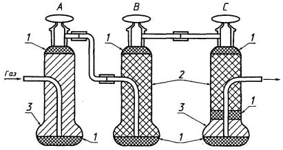 0,05 г, содержимое поглотительного сосуда В, выбрасывают, сосуд В перезаряжают. 2 При протирании тканью сосудов Мидвэйла во влажной
