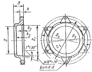 покрытием. Стандарт дополнить пунктом - 3а: «3а. Конструкция фланцев типов 3 и 4 должна соответствовать черт. 2 и табл. 2». Тип 3 Для труб с буртами Тип 4 Переходные, для труб с гладкими концами Таблица 2 Размеры в мм