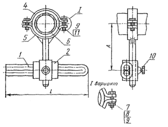 стержень; 2 - ползунок; 3 - скоба; 4 - хомут; 5 -