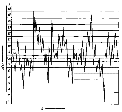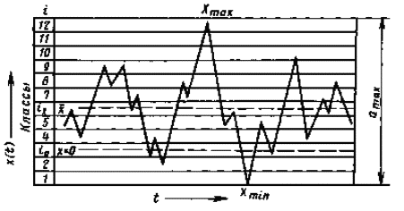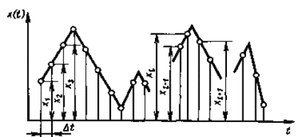 дискретизация по методу случайных ординат. Значения процесса нагружения x(t) определяют через равные промежутки времени Δt, в результате получают случайную