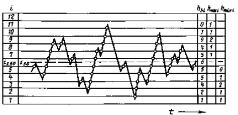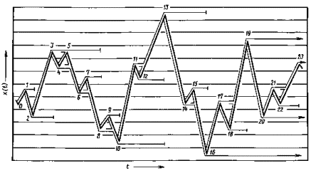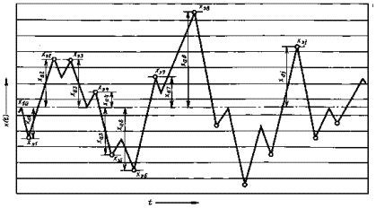 иллюстрируется дискретизация по восходящим ветвям процесса. Примечание. Допускается использовать метод пересечений для схематизации процесса нагружения (приложение 2). Дискретизация