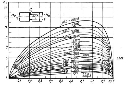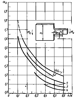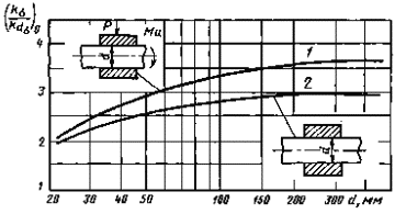 полученные значения Кσ, Кτ и Kσ/Kdσ, Kτ/Kdτ приведены в приложении 2 (черт. 1-7, 13-16). Значения (Kσ/Kdσ)0 для валов с напрессованными деталями (при наличии