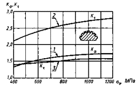 Коэффициенты Кσ, Кτ и отношения Kσ/Kdσ, Kτ/Kdτ определяют по