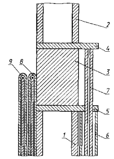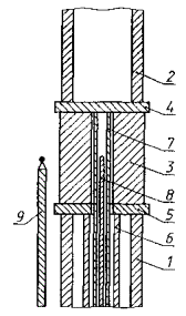 - нижняя прокладка; 6 и 7 - трубы, передающие деформацию; 8 - термопара