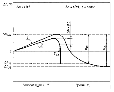 абсолютное изменение высоты образца в момент времени τ2, мм; h - первоначальная высота образца, мм. 4.2. При проведении испытания с нагрузкой образца перед