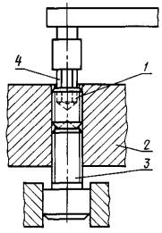 в резьбовое отверстие (допуск резьбы - 5Н) контрольной плиты 2 до упора в винт 3, ввинченный с другой стороны плиты,