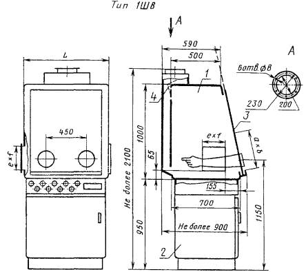 шкафов с длиной корпуса на несколько рабочих мест nА, где п = 1; 2; 3; 4 пМ, где п = 1; 2; 3. Примечание. Под рабочим местом вытяжного шкафа