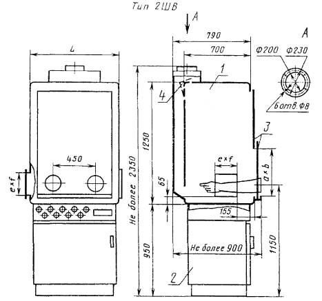 конструкцию шкафа без регулирующей заслонки и без передаточного люка (е ´ f). Таблица 2