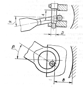 горизонтальной плоскости (угол β черт. 1) для буксира типа «штанга» на