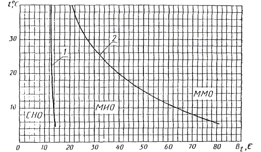 найденная точка находится на графике правее кривой 2, то отработанный нефтепродукт по вязкости относится к группе ММО, левее