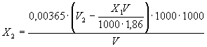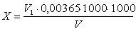 V2 - объем раствора гидроокиси натрия, израсходованный на титрование, см3; 0,00365 - масса