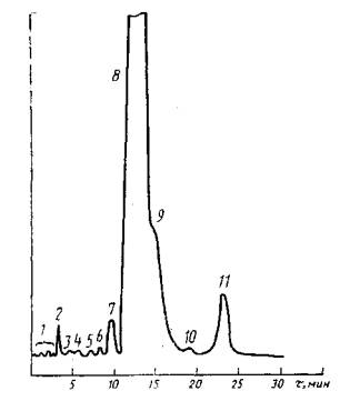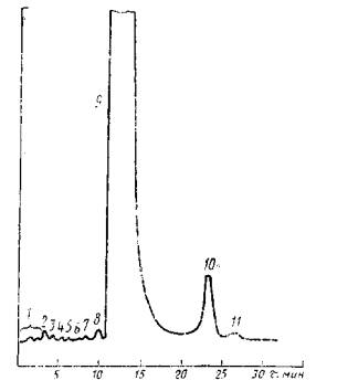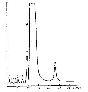2-этилгексанол; 9 - н-нониловый спирт (внутренний эталон) Черт. 1 Типовая хроматограмма технического 2-этилгексанола,