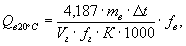 температуре 20 °С и давлении 101,325 кПа вычисляют по формуле где 4,187 - удельная теплоемкость воды, Дж/г × °С; тв