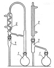 1 - колба для перегонки; 2 - холодильник; 3 - приемник Черт. 1 8.5.2.1. Перегонная колба вместимостью не менее