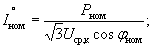 коэффициент мощности cosφном; номинальное