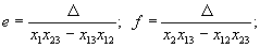 m=-d, p=-e, s=-f, где Δ=х1х2х3-х1х223-х2х213-х3х212+ +2 х12х13х23 |