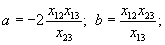 а=х1-х12; b=х2-х12; с=х12 |