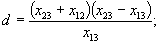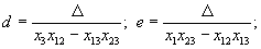 a=xl-xl2; b=x2-xl2; с=x3-xl3; d=xl2 при xl2=x23