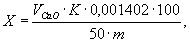 кальция (X) в процентах при натуральной влаге вычисляют по