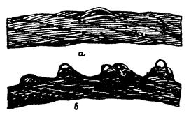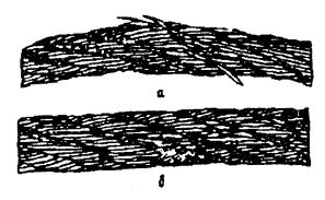 проволок каната крестовой свивки: а - небольшие лыски на проволоках; б - увеличенная длина лысок на отдельных
